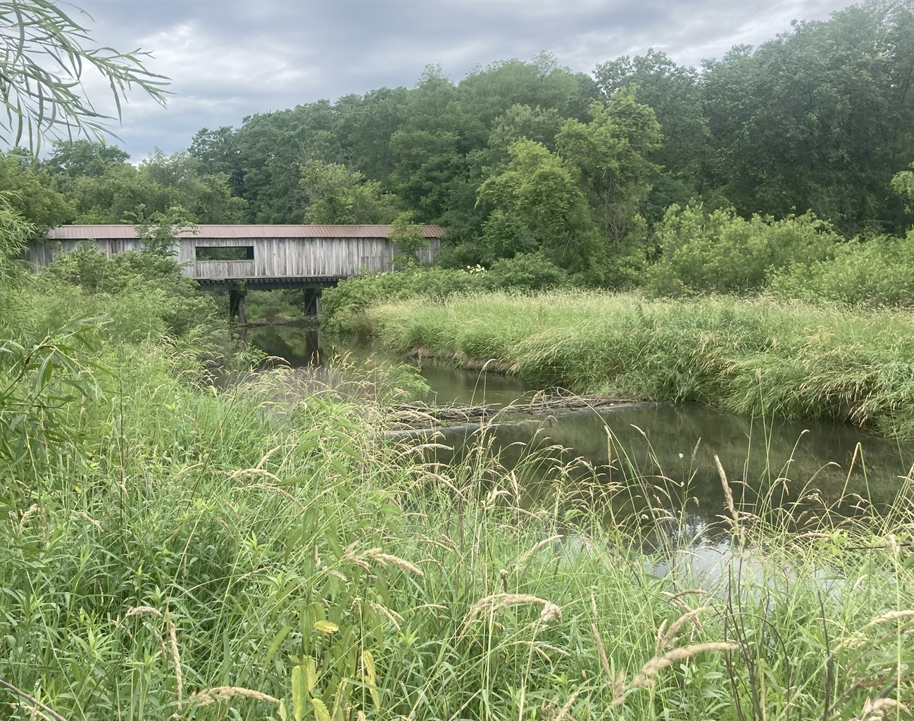 Nature - Undisturbed Norwegian Creek winds beneath the historic covered bridge, where a busy beaver dam adds its own mark on the landscape. Framed by Dogwood, wild grasses, and wetland blooms, this view captures the quiet rhythm of life at Sugar River Retreat — a place where nature and history meet in harmony. |